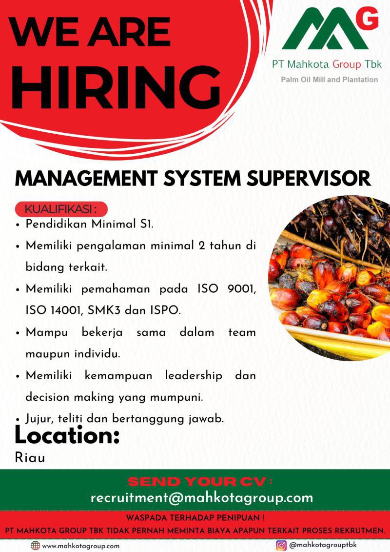 Lowongan Kerja Management System Supervisor di PT. Mahkota Group Tbk 2024
