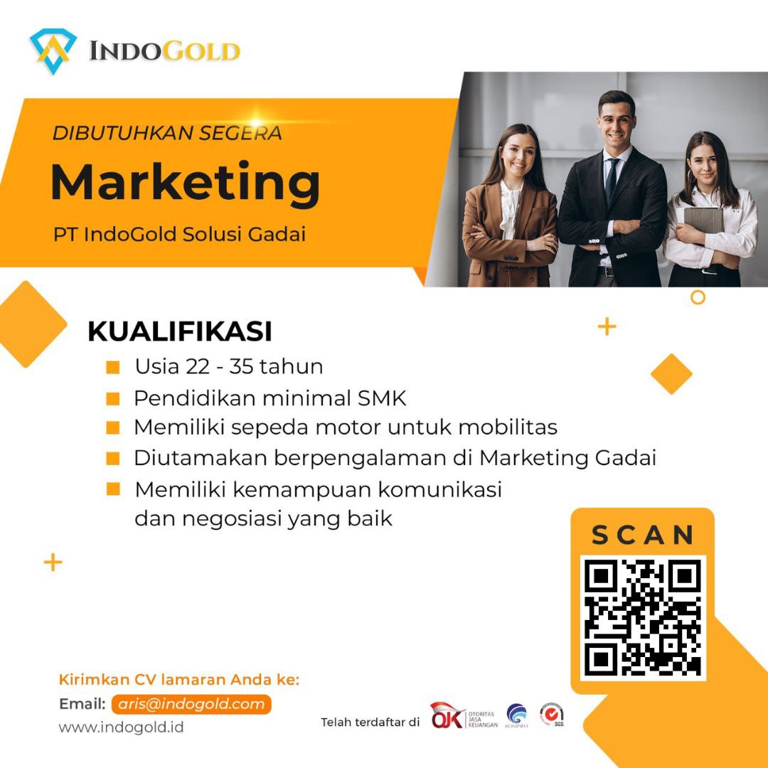 - Diutamakan berpengalaman di Marketing Gadai