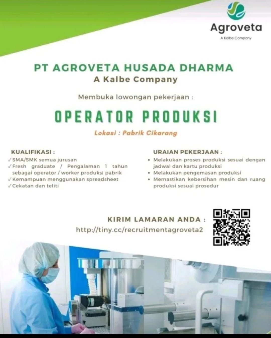 Lowongan Kerja Operator Produksi di PT. Agroveta Husada Dharma