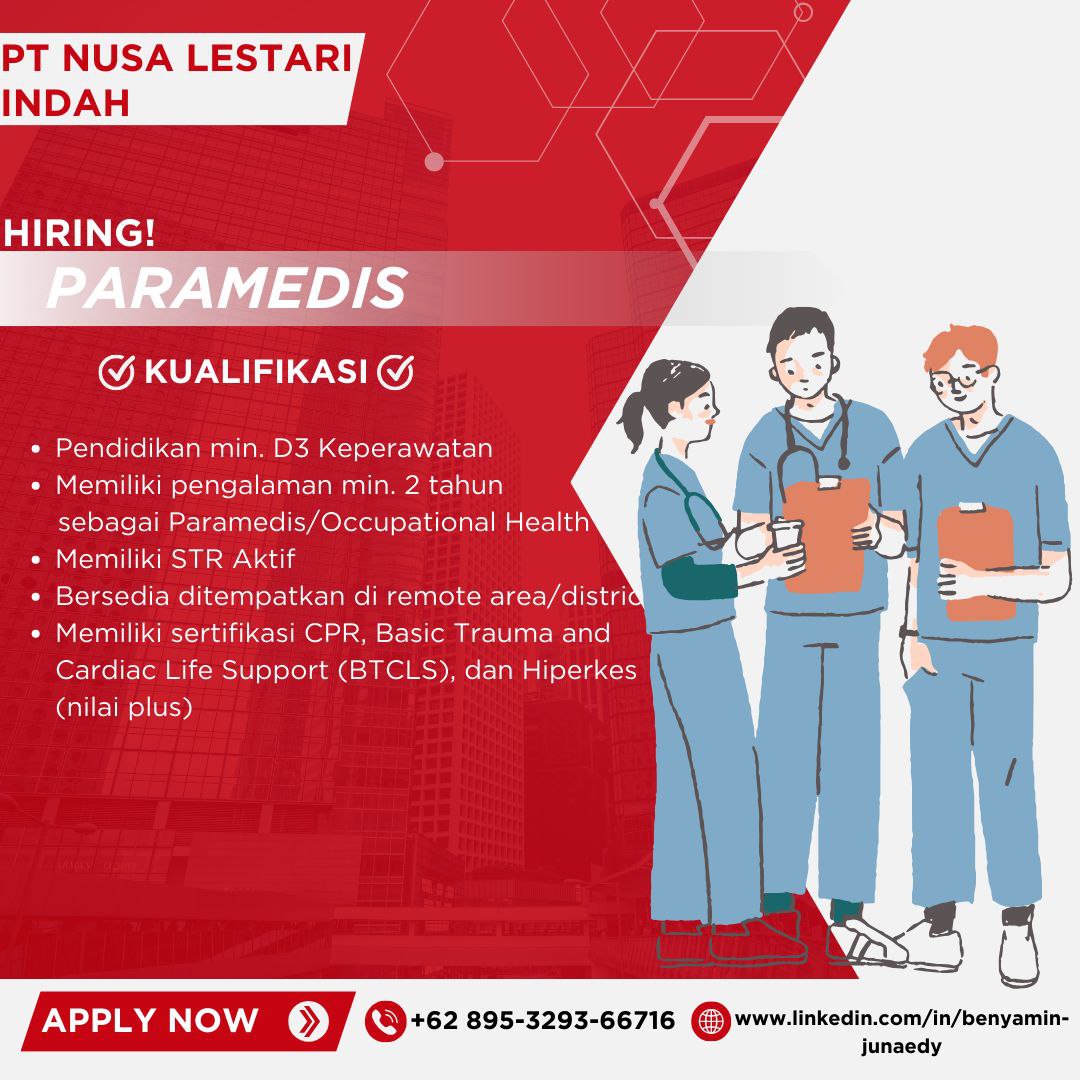 - Memiliki pengalaman min. 2 tahun sebagai Paramedis/Occupational Health