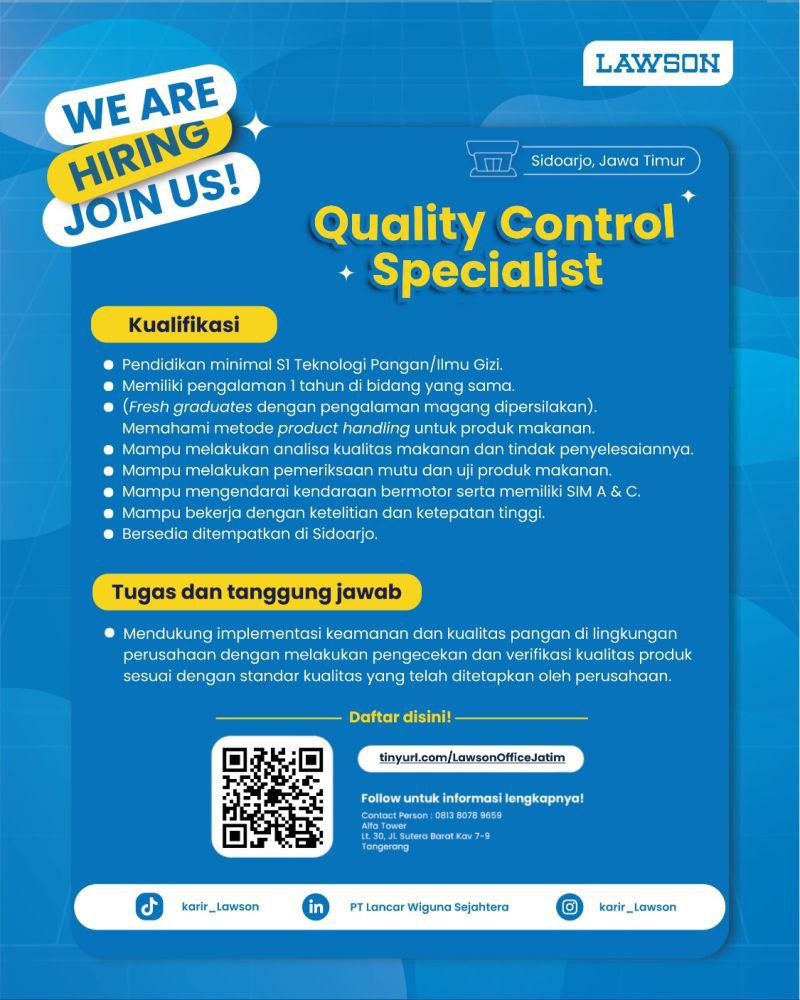 Lowongan Kerja Quality Control Specialist di Lawson 2024