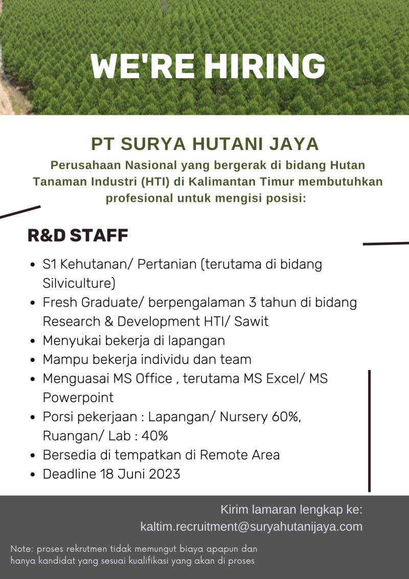 Lowongan Kerja R&D Staff di PT. Surya Hutani Jaya 2023?