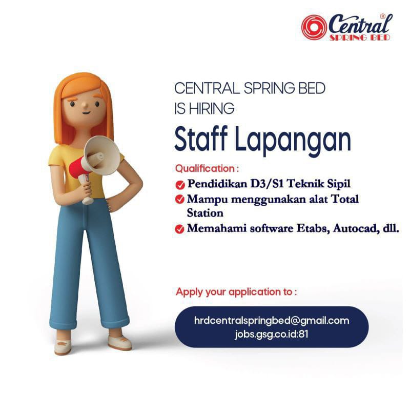 Saat ini Central Spring Bed sedang membuka lowongan kerja staff lapangan dengan kualifikasi sebagai berikut :?