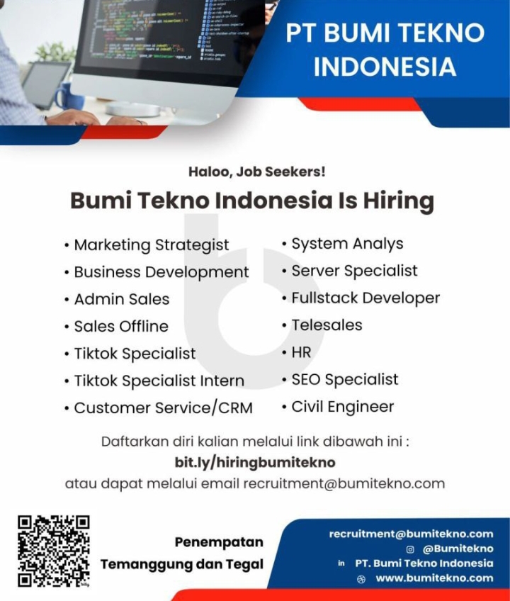 Jika anda berminat dengan lowongan kerja ini. Silahkan daftarkan diri kamu ke link : bit.ly/hirimbumitekno