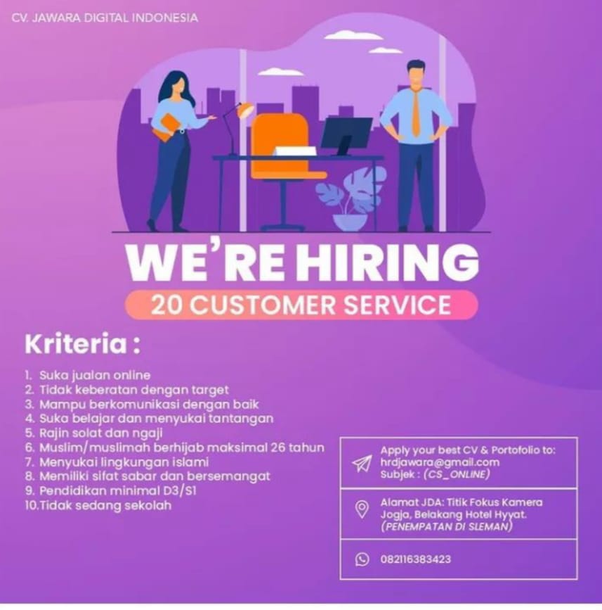 Saat ini CV. Jawara Digital Indonesia sedang membuka lowongan kerja customer service dengan kriteria? sebagai berikut :?