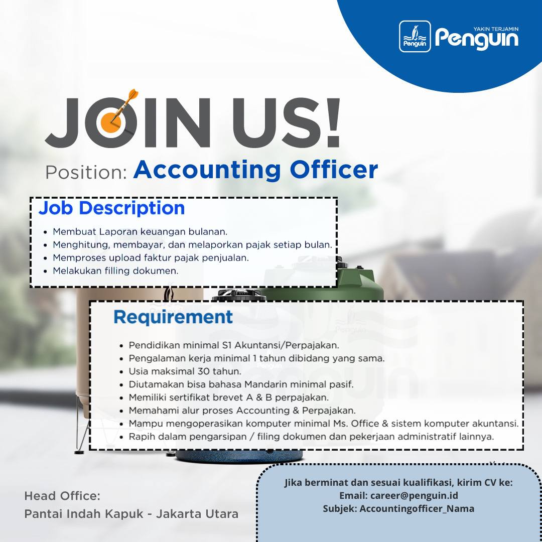 Saat ini Penguin.id sedang membuka lowongan kerja Accounting Officer dengan kualifikasi sebagai berikut :?