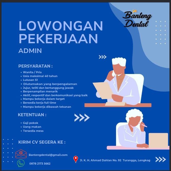 Saat ini Banteng Dental sedang membuka lowongan kerja admin dengan kualifikasi sebagai berikut :?