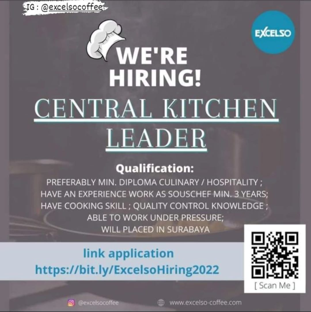 Saat ini Excelso sedang membuka lowongan kerja Central Kitchen Leader dengan kualifikasi? sebagai berikut :?
