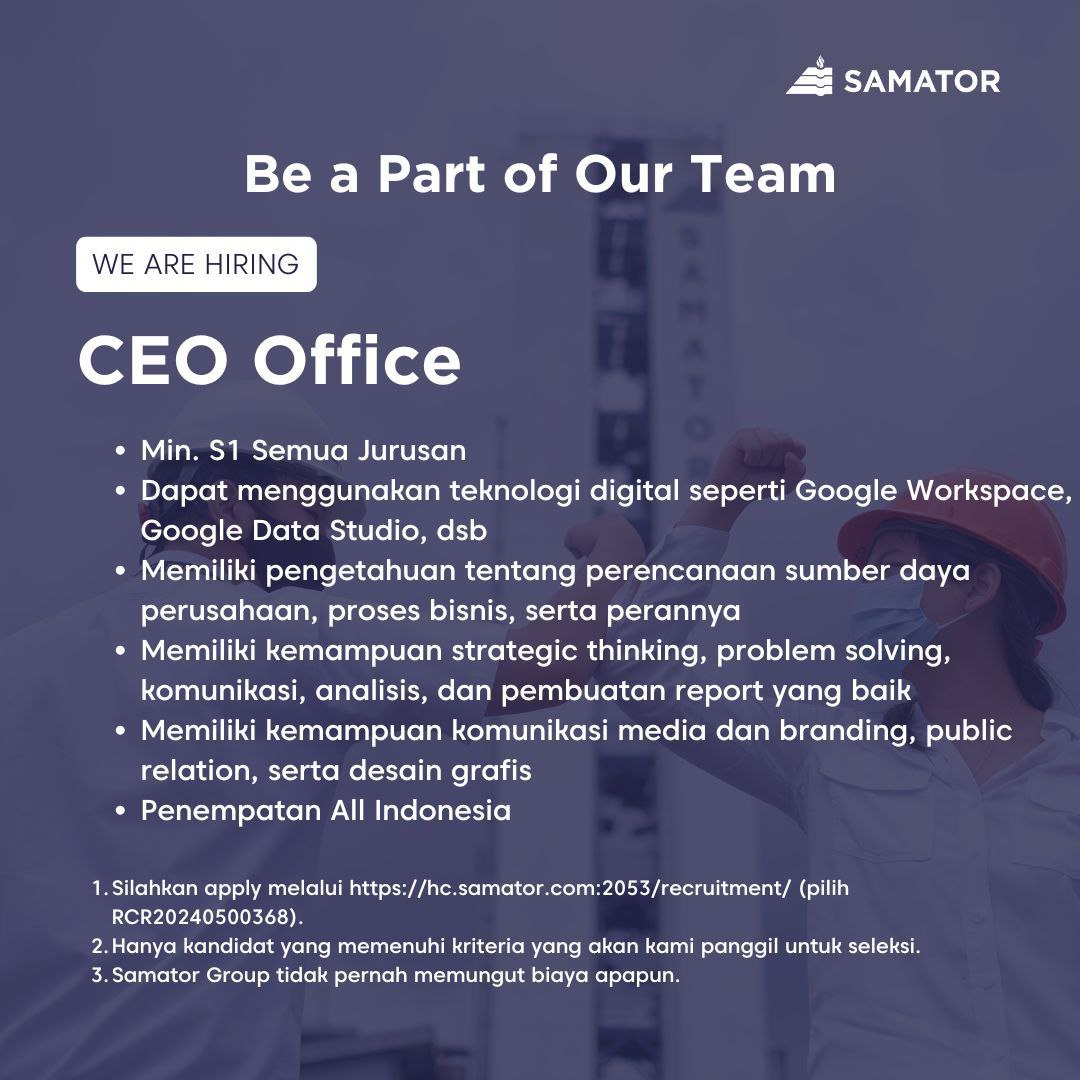 Lowongan Kerja CEO Office di Samator 2024?