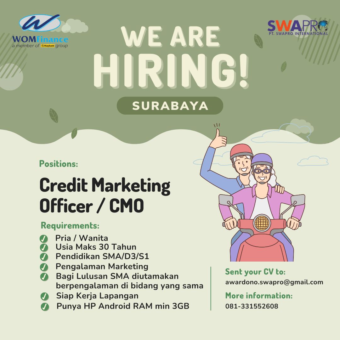Saat ini PT. Swapro International sedang membuka lowongan kerja credit marketing officer dengan kualifikasi sebagai berikut :?