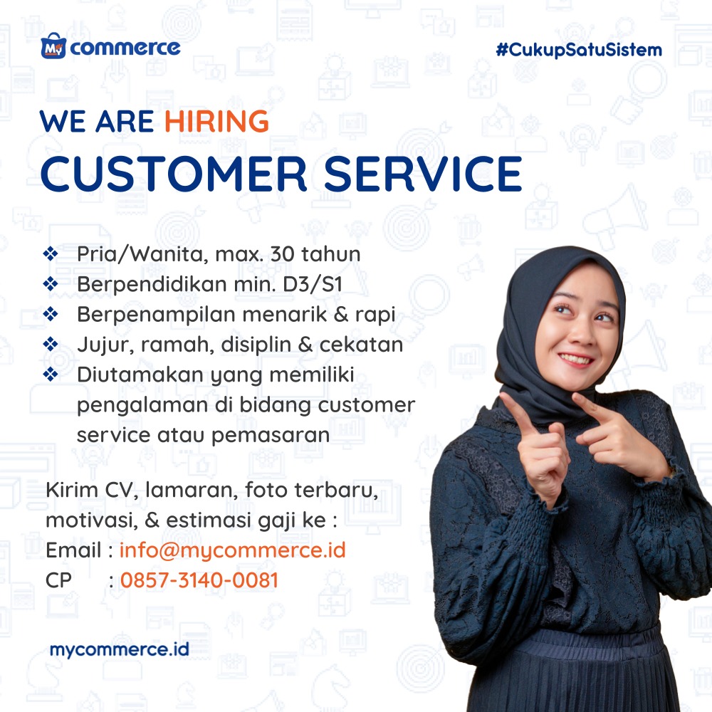 Jika anda berminat dengan lowongan kerja customer service di my commerce ini, segera kirimkan lamaran anda ke email : info@mycommerce.id?