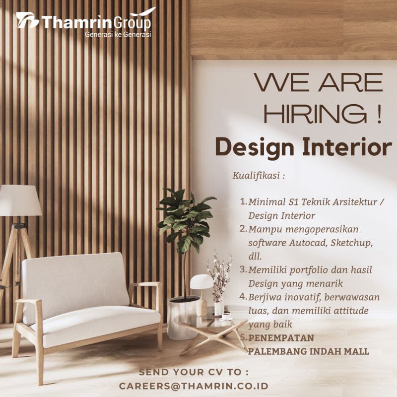 Thamrin Group sedang membuka lowongan kerja Desaign Interior dengan kualifikasi sebagai berikut :?