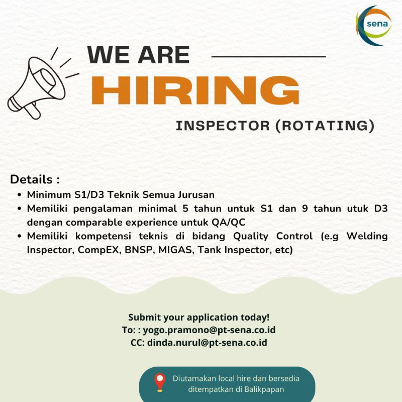 Saat ini PT Solusi Energy Nusantara (SENA) sedang membuka lowongan kerja inspector ( rotating ) dengan kualifikasi sebagai berikut :?