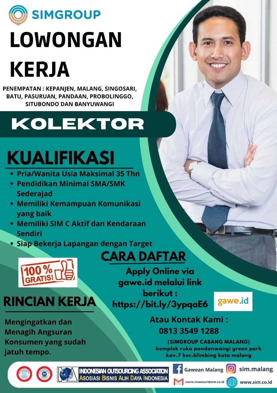 Saat ini SIMGROUP sedang membuka lowongan pekerjaan kolektor. Adapun kualifikasinya sebagai berikut:
