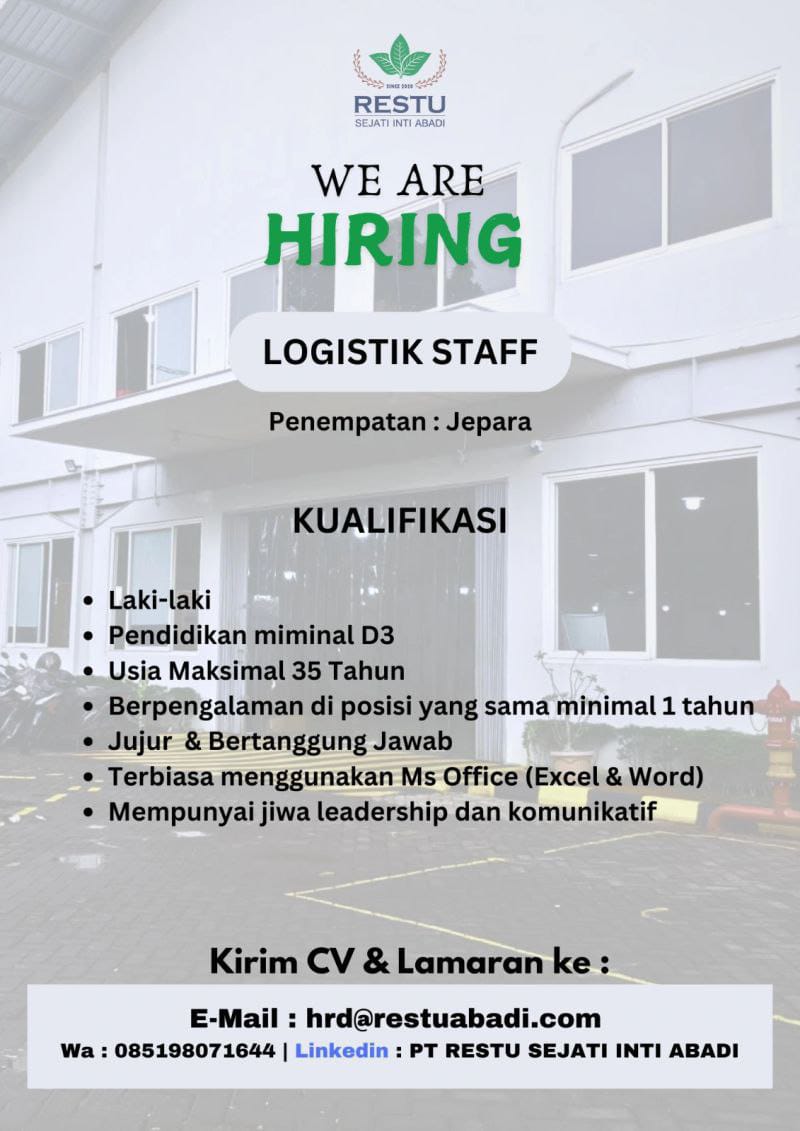 Saat ini PT. Restu Sejati Inti Abadi sedang membuka lowongan kerja logistic staff dengan kualifikasi sebagai berikut :?