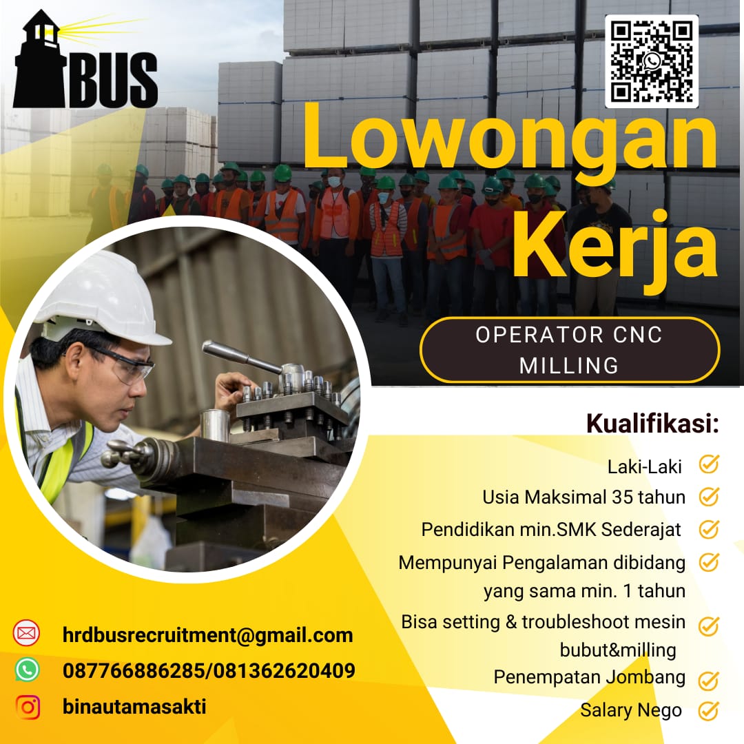 Saat ini PT. Bina Utama Sakti sedang membuka lowongan kerja Operator CNC Milling dengan kualifikasi sebagai berikut :?
