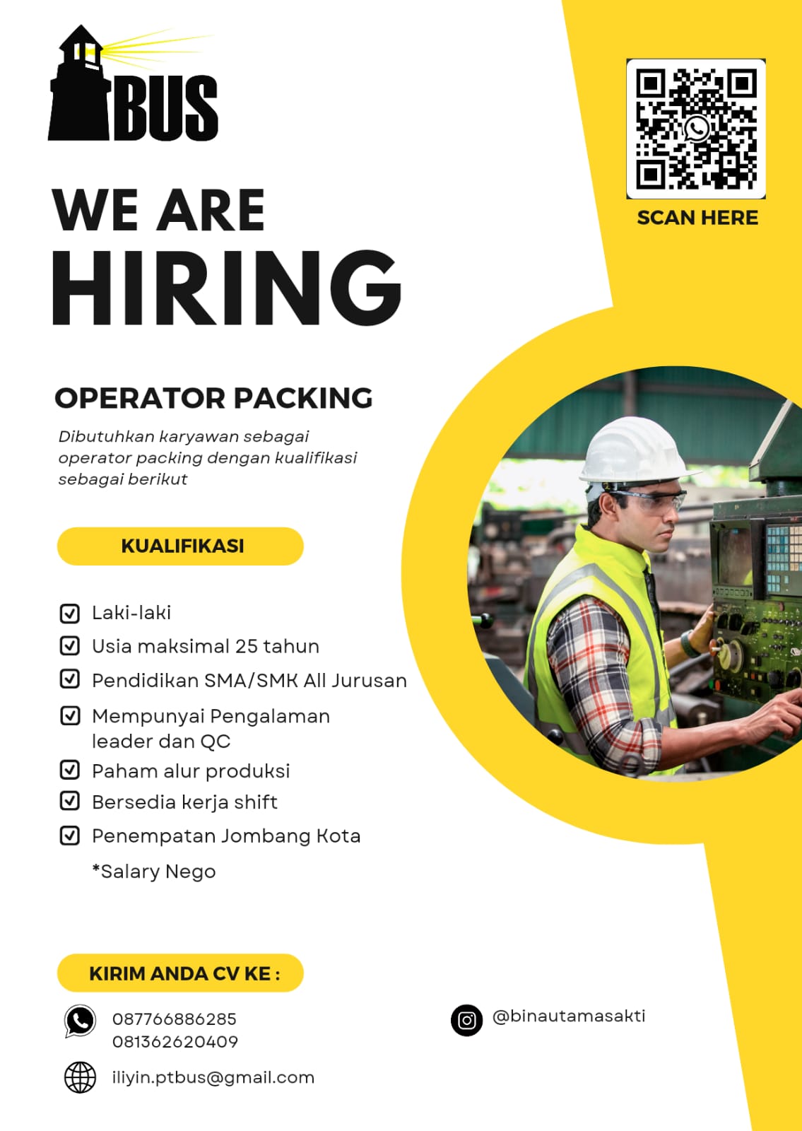 Saat ini PT. Bina Utama Sakti sedang membuka lowongan kerja operator packing dengan kualifikasi sebagai berikut :?