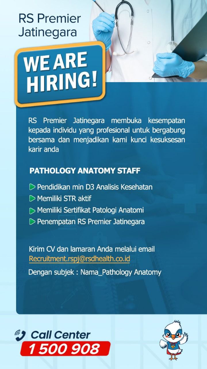 Saat ini RS Premier Jatinegara sedang membuka lowongan kerja Pathology Anatomy Staff dengan kualifikasi sebagai berikut :?