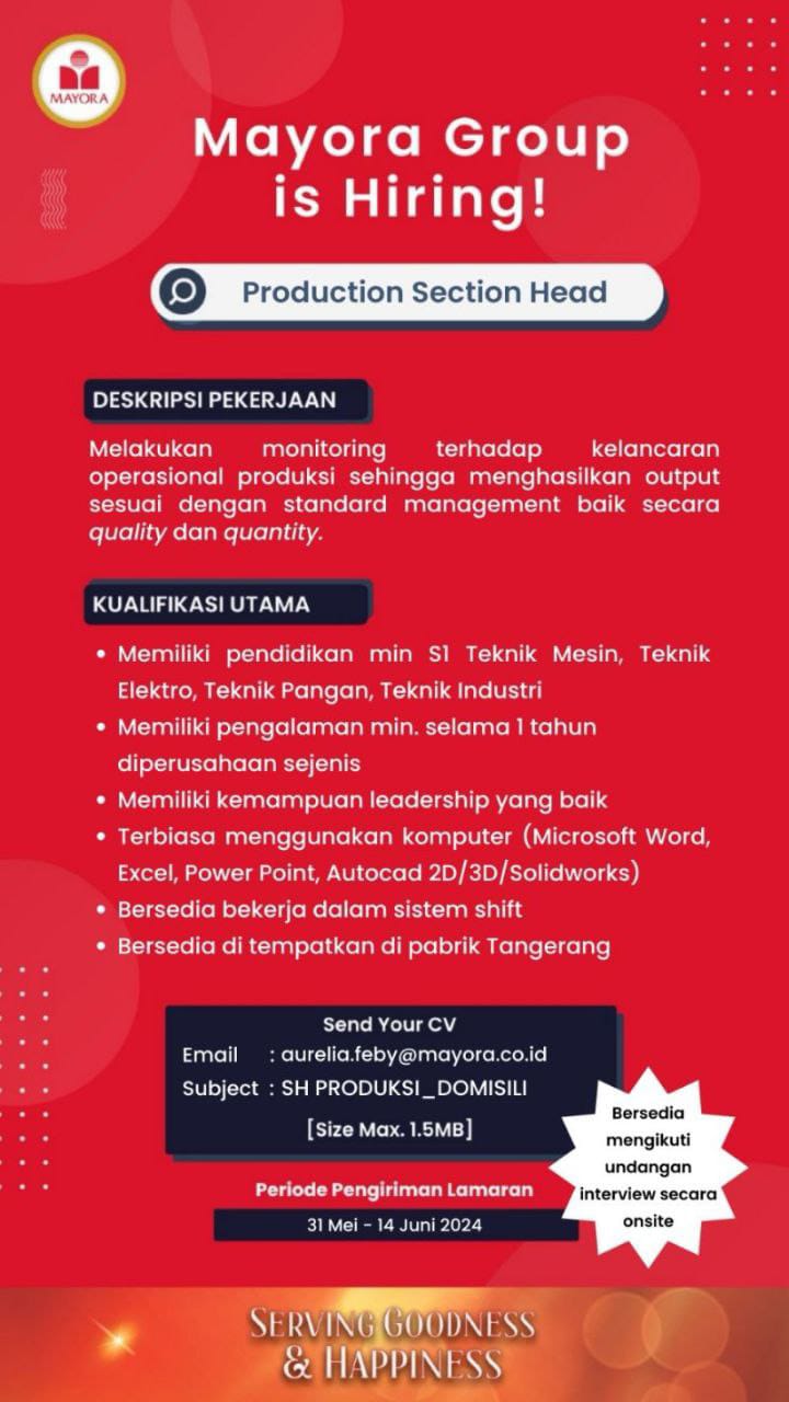 Lowongan Kerja Production Section Head di Mayora Grup 2024