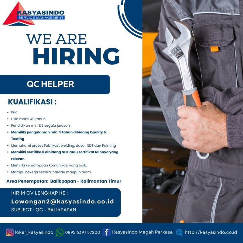 Saat ini PT. Kasyasindo sedang membuka lowongan kerja QC Helper dengan kualifikasi sebagai berikut :?