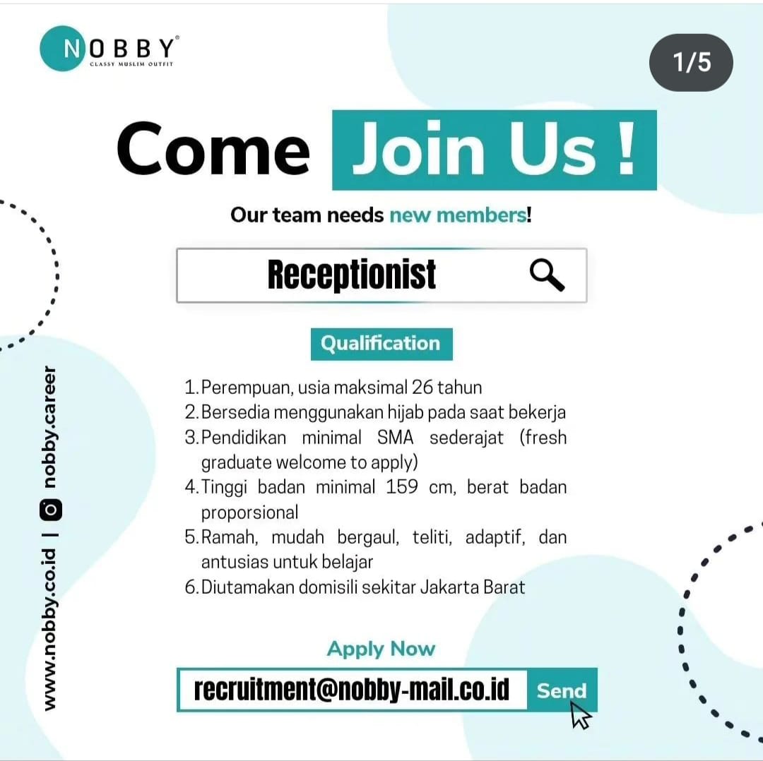 Saat ini Bobby sedang membuka lowongan kerja resepsionis? dengan kualifikasi sebagai berikut :
