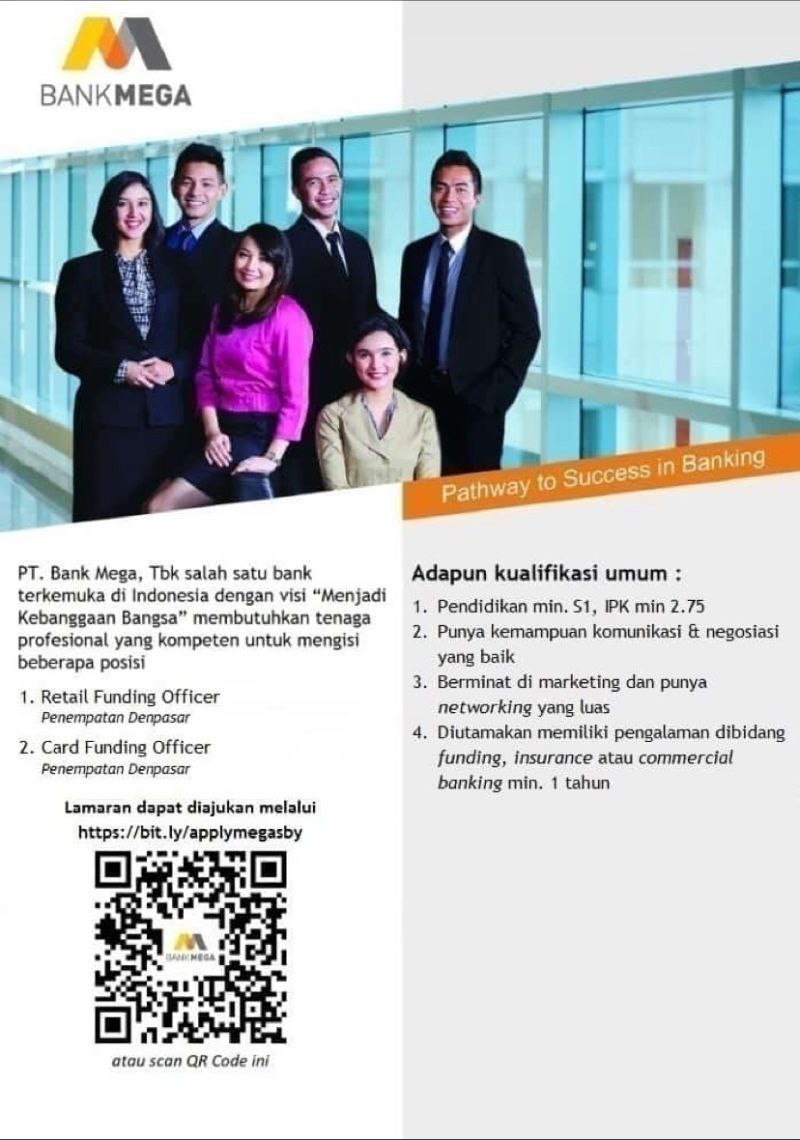 Saat ini Bank Mega sedang membuka lowongan kerja Retail Funding Officer dan Card Funding Officer dengan kualifikasi sebagai berikut :?