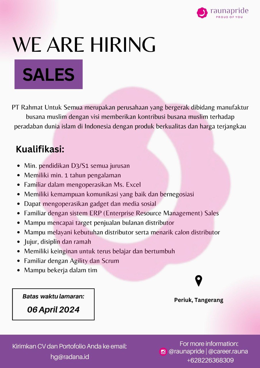 Saat ini Raunapride sedang membuka lowongan kerja sales dengan kualifikasi sebagai berikut :?