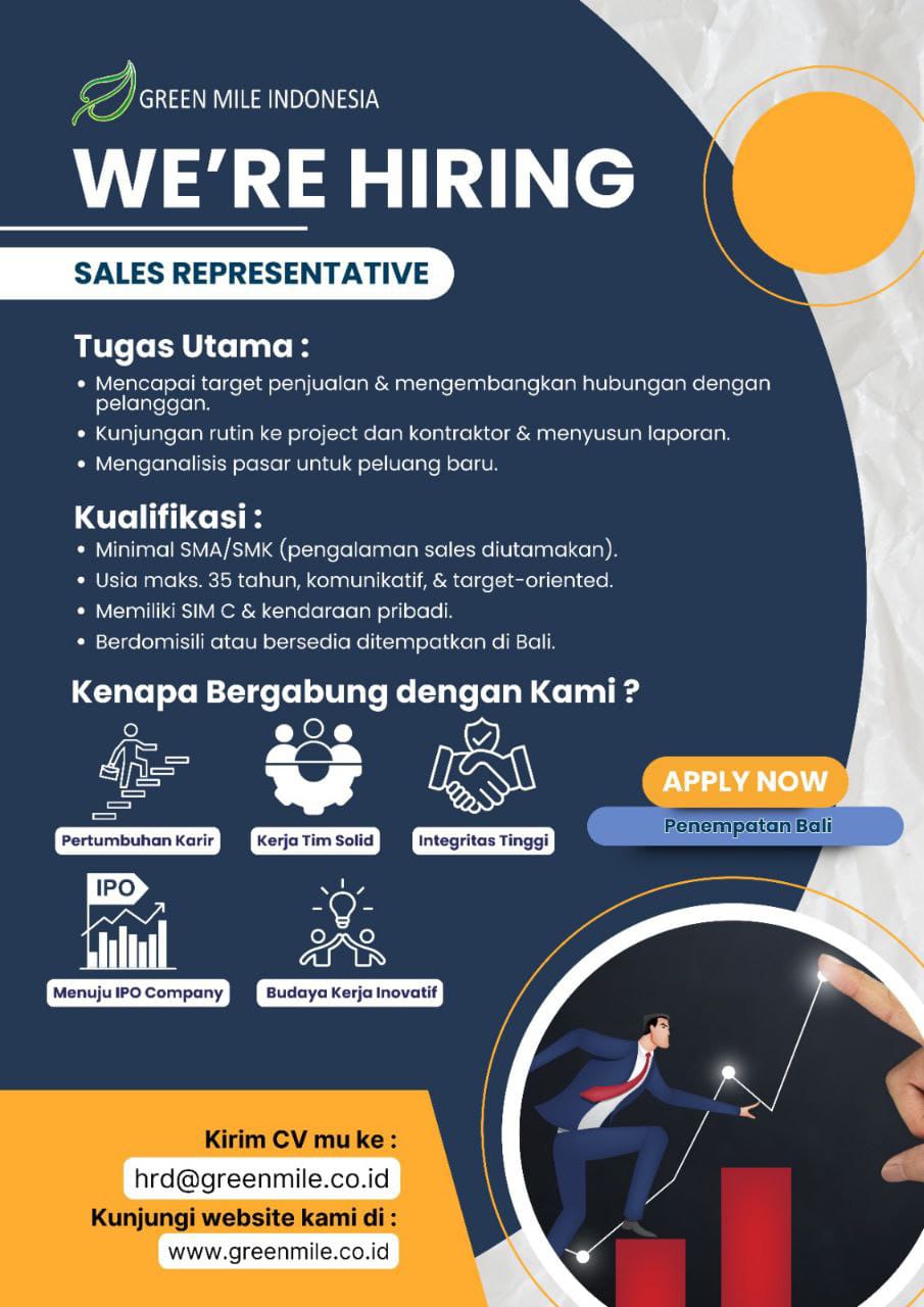 Lowongan Kerja Sales Representative di Green Mile Indonesia 2024