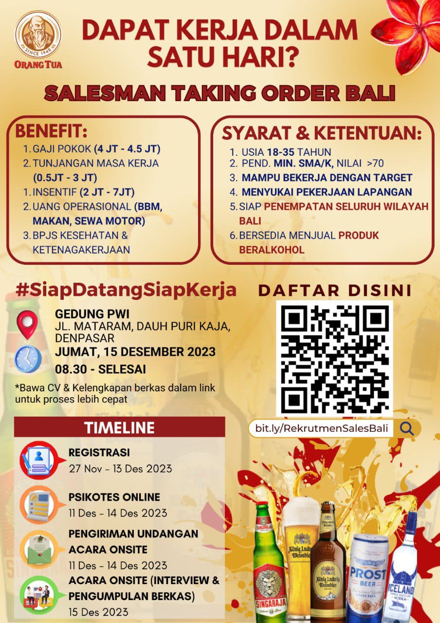 Lowongan Kerja Salesman Taking Order Bali di Orang Tua Group 2023