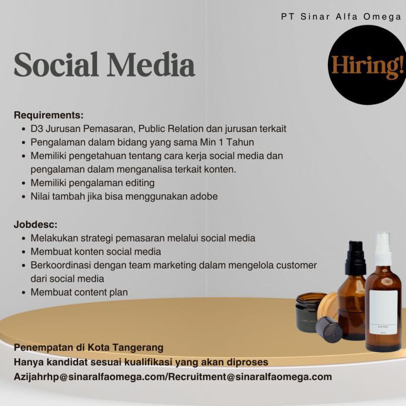 Saat ini PT. Sinar Alfa Omega sedang membuka lowongan kerja social media dengan kualifikasi sebagai berikut :?