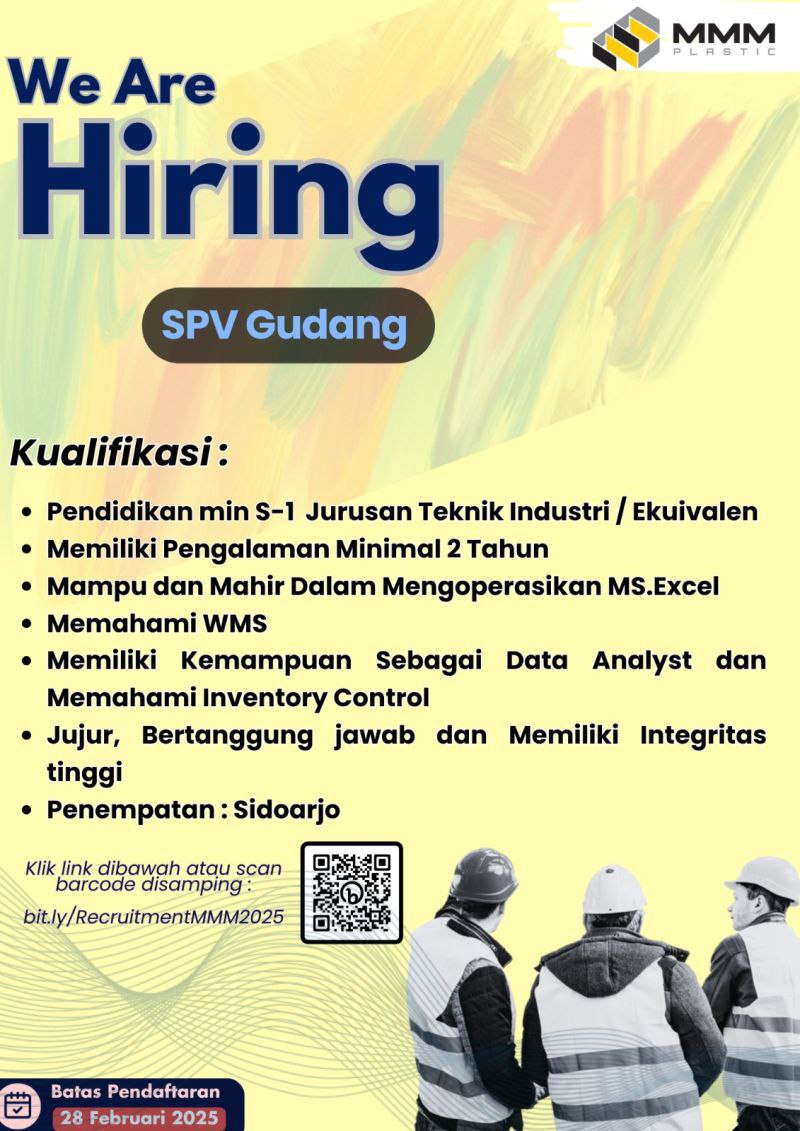 Saat ini MMM Plastic sedang membuka lowongan kerja spv gudang dengan kualifikasi sebagai berikut :?