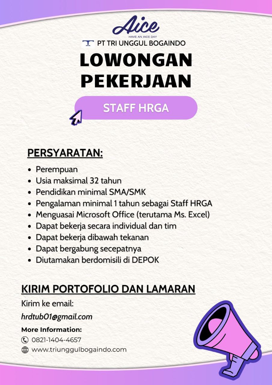 Lowongan Kerja Staff HRGA di PT. Tri Unggul Bogaindo 2025?