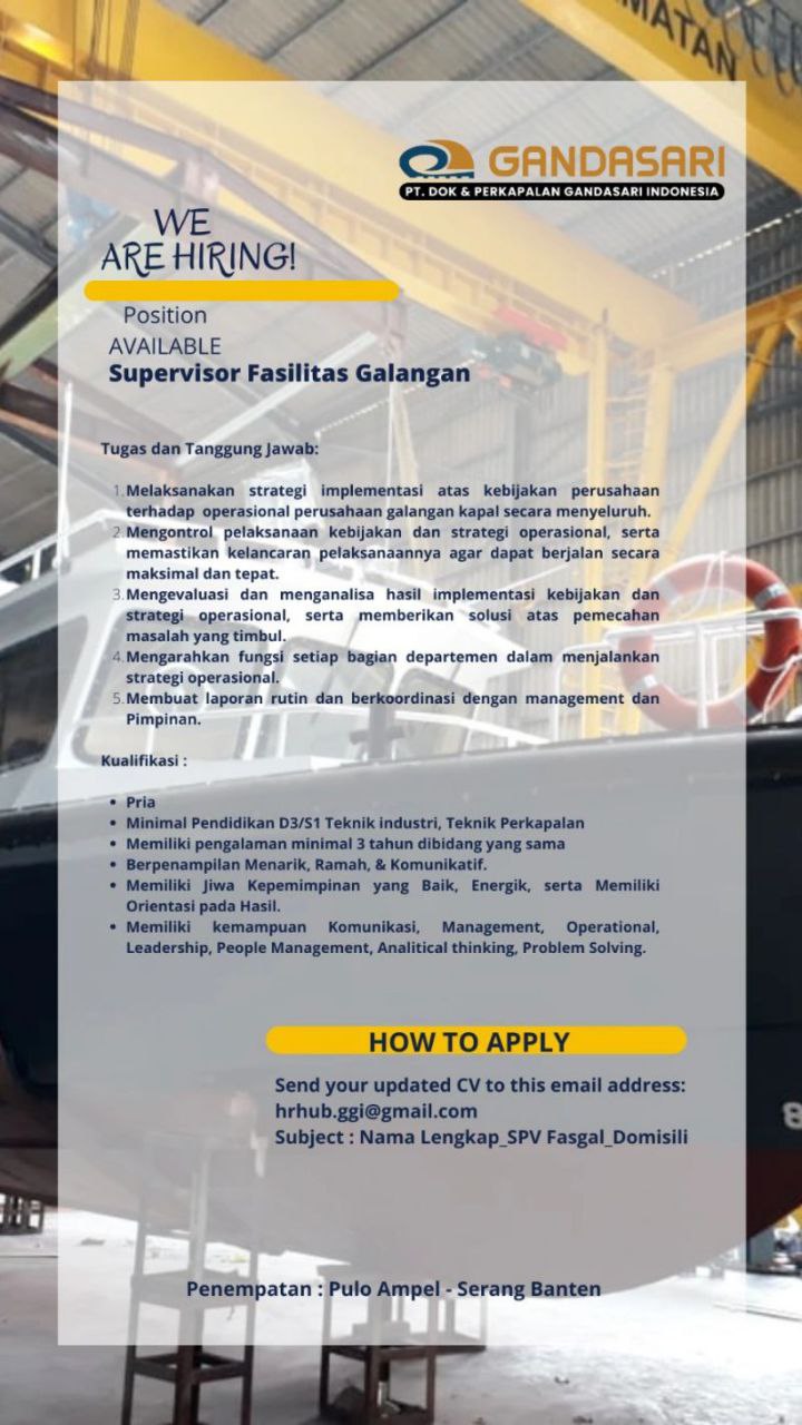 Lowongan Kerja Supervisor Fasilitas Galangan di PT. Dok & Perkapalan Gandasari Indonesia 2024
