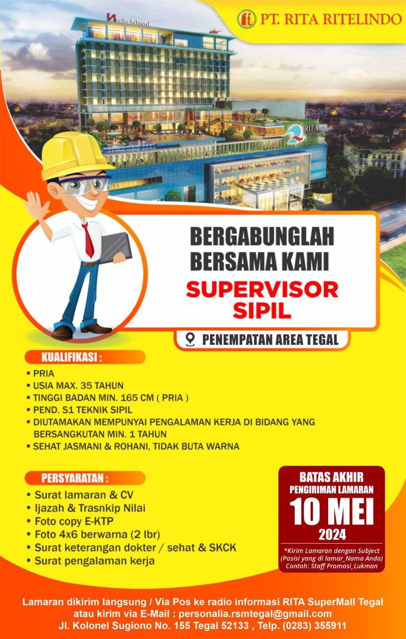 Saat ini PT. Rita Ritelindo sedang membuka lowongan supervisor sipil dengan kualifikasi sebagai berikut :?