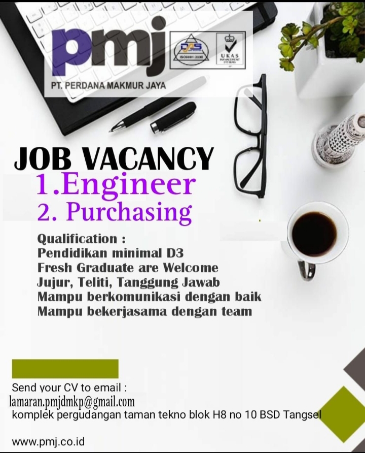 Saat ini PMJ sedang membuka lowongan pekerjaan untuk posisi sebagai Engineer dan Purchasing dengan kualifikasi sebagai berikut :