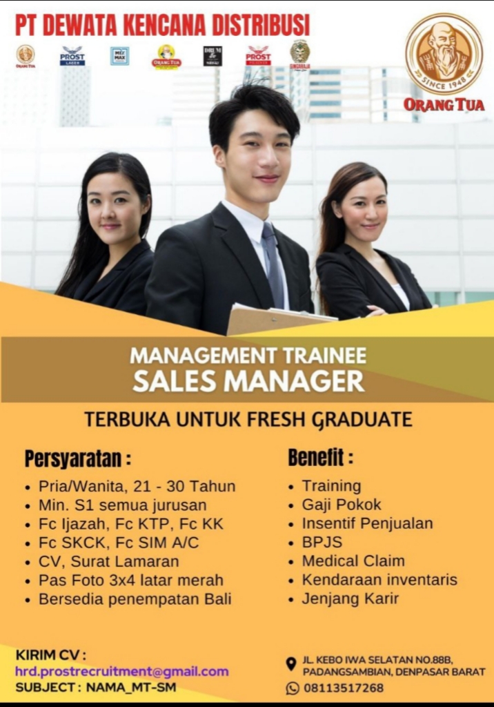 Lowongan pekerjaan Management Trainee SALES Manager di PT. Dewata Kencana Distribusi.